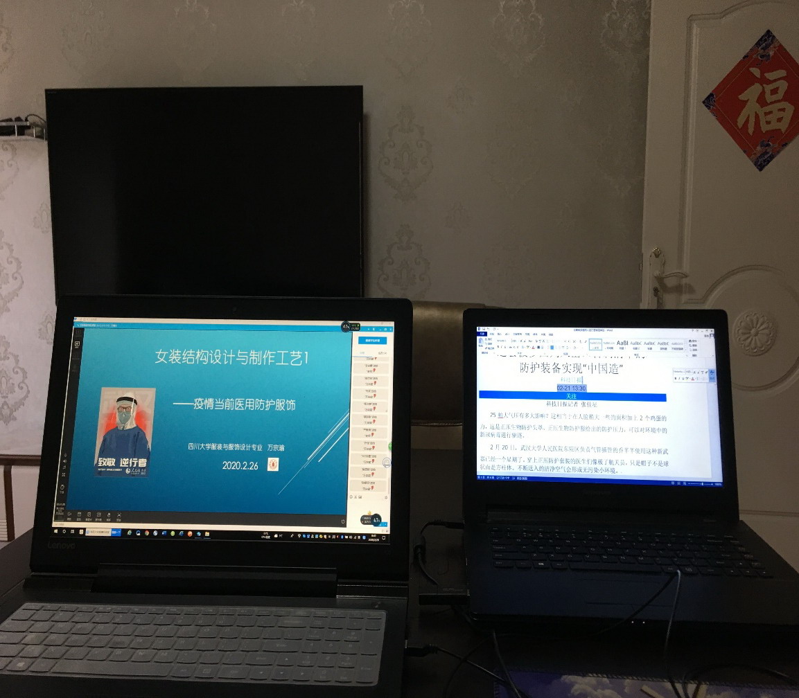 《女装结构设计与制作工艺》任课教师万宗瑜老师在教学过程中,基于疫情防控的背景,引导学生积极思考如何创新性设计医用防护服�
