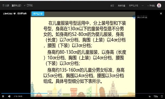《童装结构设计与制作工艺》任课教师申鸿副教授事先尝试多种教学平台,基于服装设计类课程理论结合实践的特点,最终采用腾讯课堂视频录制协�QQ群教学研讨的授课方式,从而构建起符合课程特点的线上教学模式。在课程内容的呈现上,根据教学内容的完整性,把课程细分为不超�30分钟的小版块,每个版块包含在腾讯课堂观看时长�15分钟以内的授课视频和QQ群在线问答等两个部分,根据讨论过程掌握教学效果并实时进入另一个版块的学习�