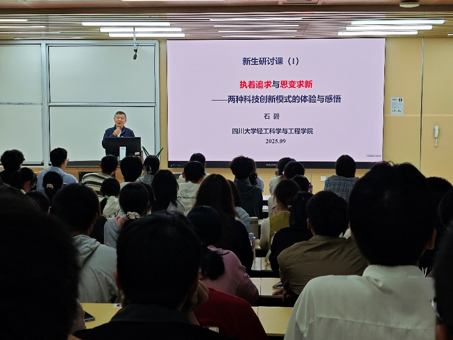 在江安综合楼C207为2025级新生量身打造的新生研讨课隆重开启,由石碧院士亲临现场,现身说法,生动诠释了科学研究的执着追求与创新精神,声情并茂、启迪开智。