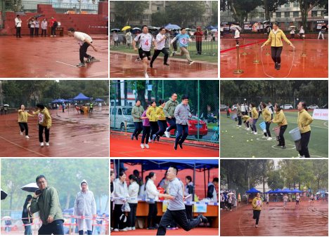 教职工从教学科研一线奔赴赛场,在细雨中集结,以昂扬的姿态展现出轻工人奋勇争先、团结拼搏的精神风貌。