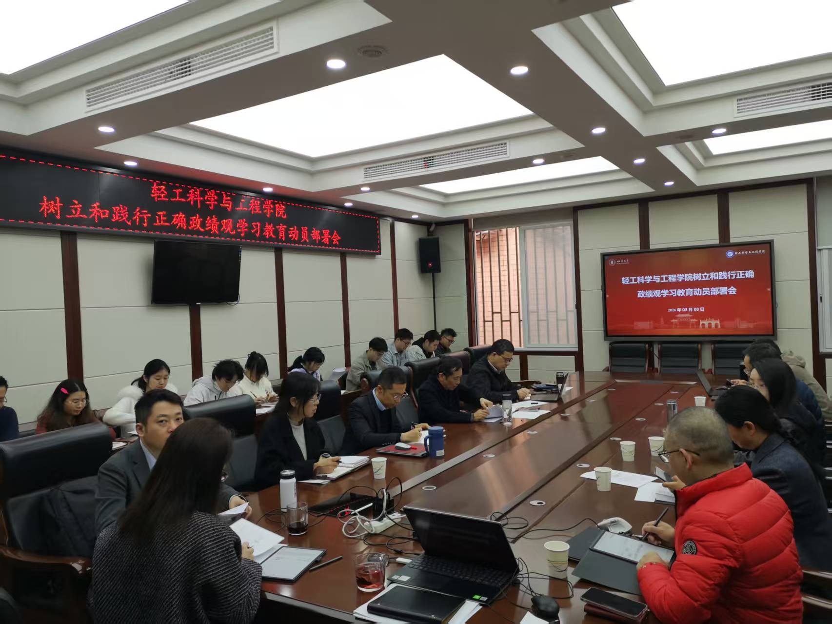李天富书记强调,全院党员干部要深刻认识开展学习教育的重大意义,切实把思想和行动统一到党中央及学校党委决策部署上来,自觉把学院发展置于党和国家事业全局中谋划、推进与落实;要以高度的政治自觉、饱满的政治热情、严肃的政治态度投身学习教育,确保取得扎实成效;要准确把握学习教育目标要求,坚持两手抓两促进,将解决思想认识问题和解决实际问题结合起来,确保学有质量、查有力度、改有成效;要严格落实各项工作安排,精心组织实施,党员领导干部要带头学习、做好示范,推动学习教育与学院中心工作同部署、同落实;要切实把学习教育成果转化为实干实绩,全力推动学院“十五五”高质量开局起步,为强国建设、民族复兴贡献轻工智慧与力量。