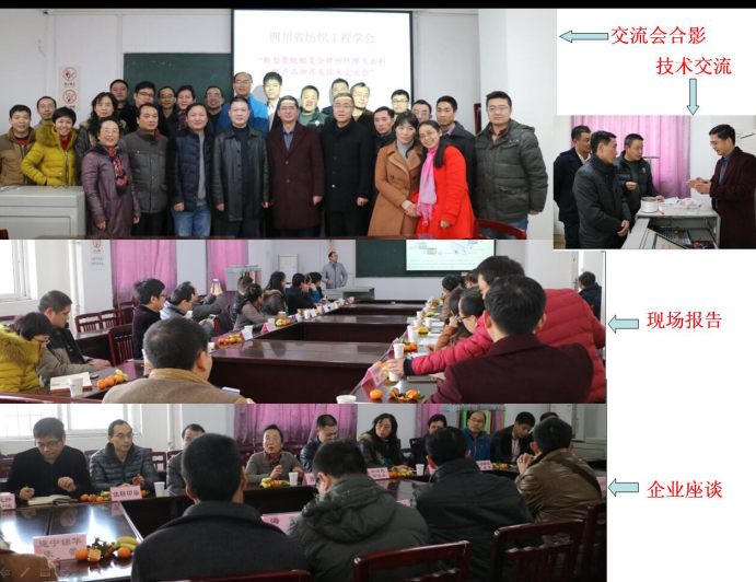 轻纺与食品学院在2016年12月27日(周二)联合主办的 “四川省纺织新产品推荐及技术交流会”在纺工楼511室顺利召开。交流会由四川省纺织工程学会张虹秘书长主持,四川省经信委轻纺处邓治永处长到会指导,包括丝丽雅、惠美、新绿洲、海蓉、遂宁锦华、天骄纺织、佳联印染、意龙印染、川棉印染、恒创、鸿兴化纤、科瑞特等川内企业以及省纺研院,省丝研院的负责人和技术主管等参会交流。