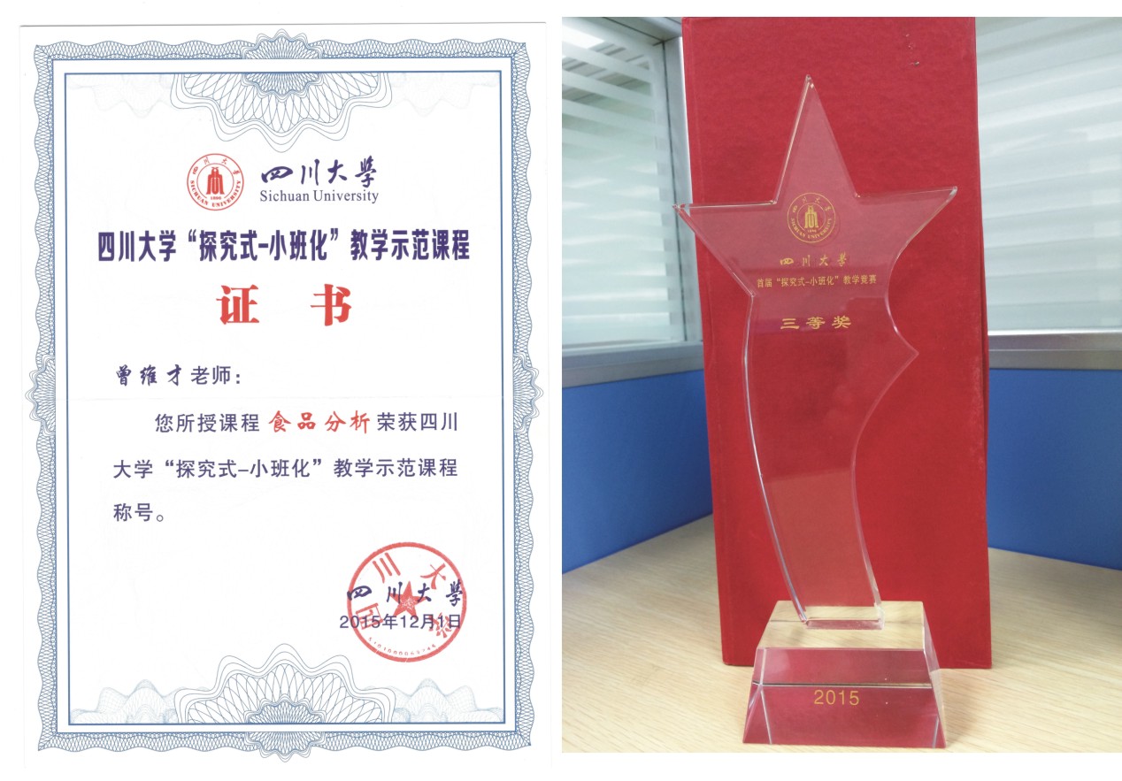 根据91自拍 文件(川大教[2015] 193号)“关于表彰首届91自拍 “探究式-小班化”教学竞赛获奖教师的决定”通知,我院食品工程系曾维才老师荣获“91自拍 首届“探究式-小班化”教学竞赛三等奖”,由其主讲的本科课程《食品分析》获得“91自拍 “探究式-小班化”教学示范课程”的称号,这是我院积极进行响应学校在本科教学中,通过启发式讲授、互动式谈论、全过程考核、非标准答案考试等多项举措激发学生主动学习的热情,提高学习成效的良好体现,也是我院本科教学改革的一项可喜成果。