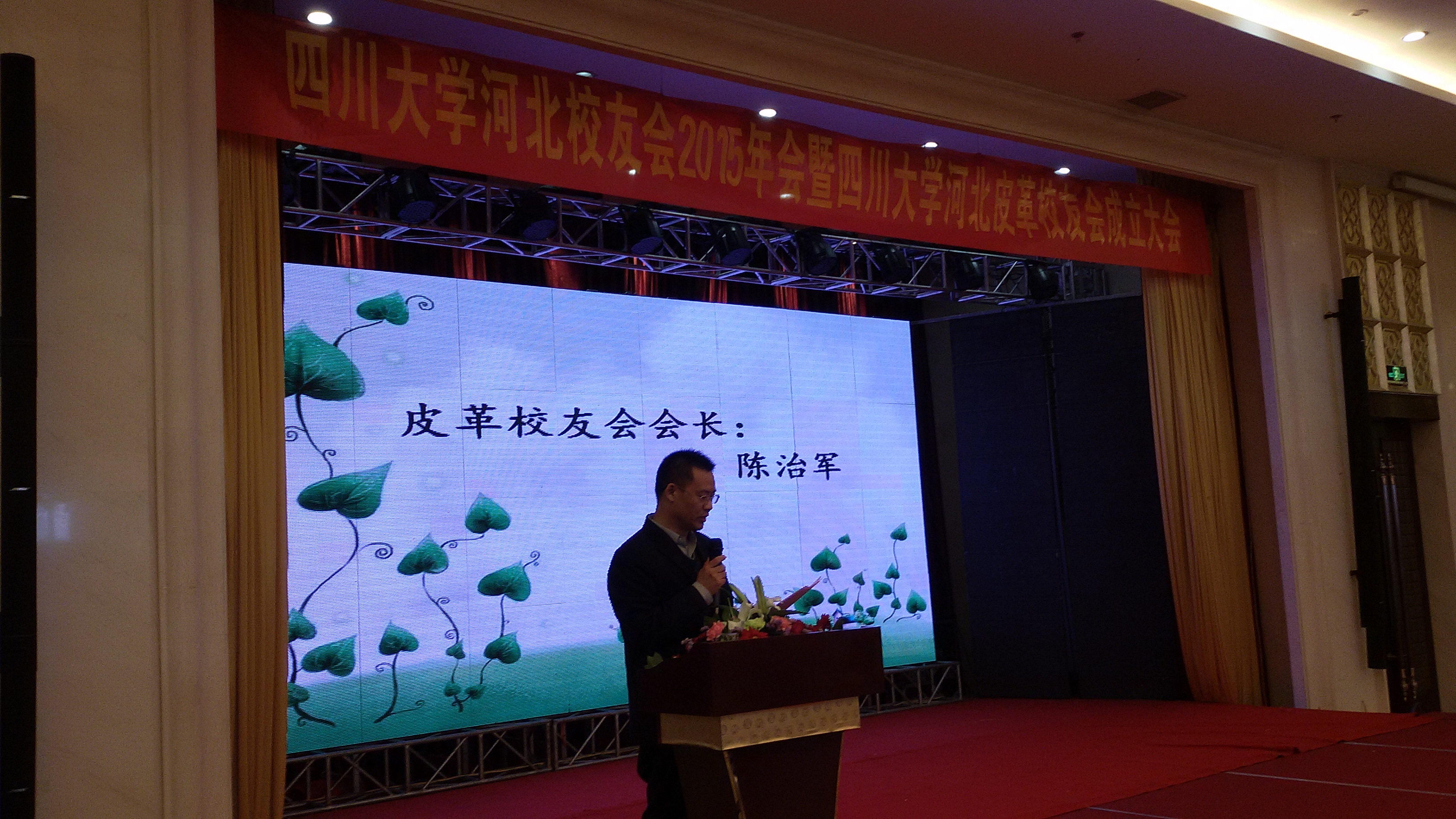 河北皮革校友会成立的批复》,并宣布了首届理事会成员名单。大会推选联丰化工总经理陈治军校友任会长,凯中化工孙晓刚校友任常务副会长,毛映辉校友为秘书长。在会上,河北校友会会长张自然致辞,对皮革校友会成立表示祝贺。河北皮革校友会首任会长陈治军校友就此次成立大会和下一步工作思路做了发言。他首先感谢学校、行业、校友、国内外企业和朋友对此次成立大会的祝福、支持和赞许,表示大会的开始也是交流平台的开始,期待河北皮革校友会各位校友能通过校友会平台多交流、多互助、共发展,在燕赵大地畅写丰富多彩的人生,为母校增光,为母校120周年校庆献礼。在欢声笑语中,校友们纷纷合影留念,91自拍