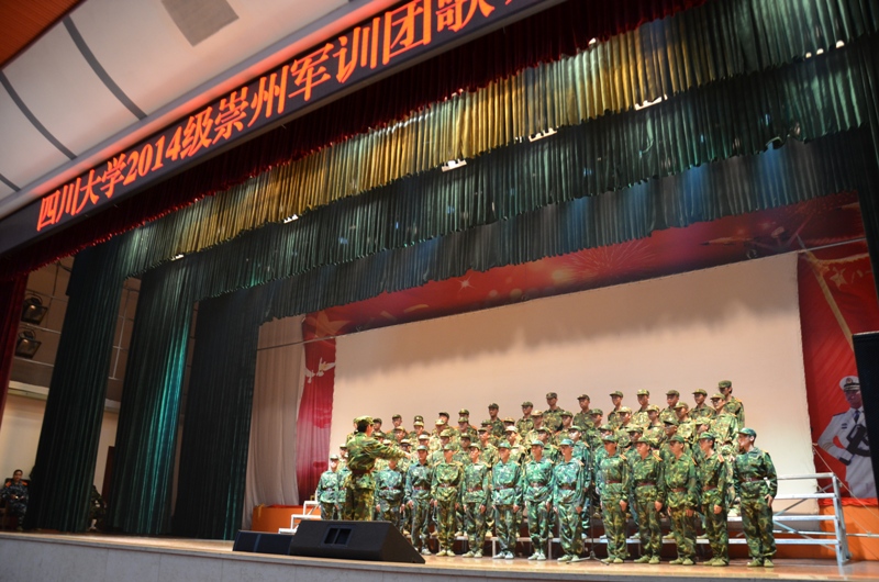 2014级崇州军训团歌咏比赛中也踊跃争先,取得了丰硕的成果,女生所在的一营一连及男生所在的一营二连均获得歌咏比赛三等奖。学院领导虽身处学校,却心系远在军营的同学们。7月11日下午四时,我院党委赵毅书记、院长何有节教授、党委副书记刘晓虎副教授、肖凯副院长,以及学院党政办、各系、学工组、团委的教师代表一行来到军营,慰问学生、检查军训情况,给同学们带来了牛奶、苹果等慰问品。院长何有节教授在发言中肯定了同学们在军训中付出的辛苦努力,并鼓励同学们继续发扬轻纺人坚持不懈、顽强拼搏的精神,把握军训这个磨练自己的机会,从中学会自律、学会忍受、学会自强,在今后的生活中时刻保持军人严于律己、艰苦奋斗的高尚品质。2015年7月17日上午,同学们乘车离开军营,正式结束军训。此次军训取得圆满成功,不仅推动了我校国防教育发展,也让学生在军训生活中得到身体及心理上的考验及提升。