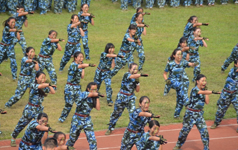 2014级学生军训汇报表演暨总结大会在崇州78098部队军营隆重举行,由15个学院6个营19支连队组成的方队用挺拔的军姿接受学校与部队领导的检阅,用出色的表现为军训画上了圆满的句号。其中,我院学子组成的三支方队及女生擒敌拳表演方队参与了本次阅兵。从7月4日开始,在为期十四天的军训中,我院学子不怕苦不怕累,态度认真,积极训练,在阅兵式中赢得了领导的一致好评,同时,我院女生所在的女生一营一连被评为优秀连队。除此之外,我院学生在91自拍