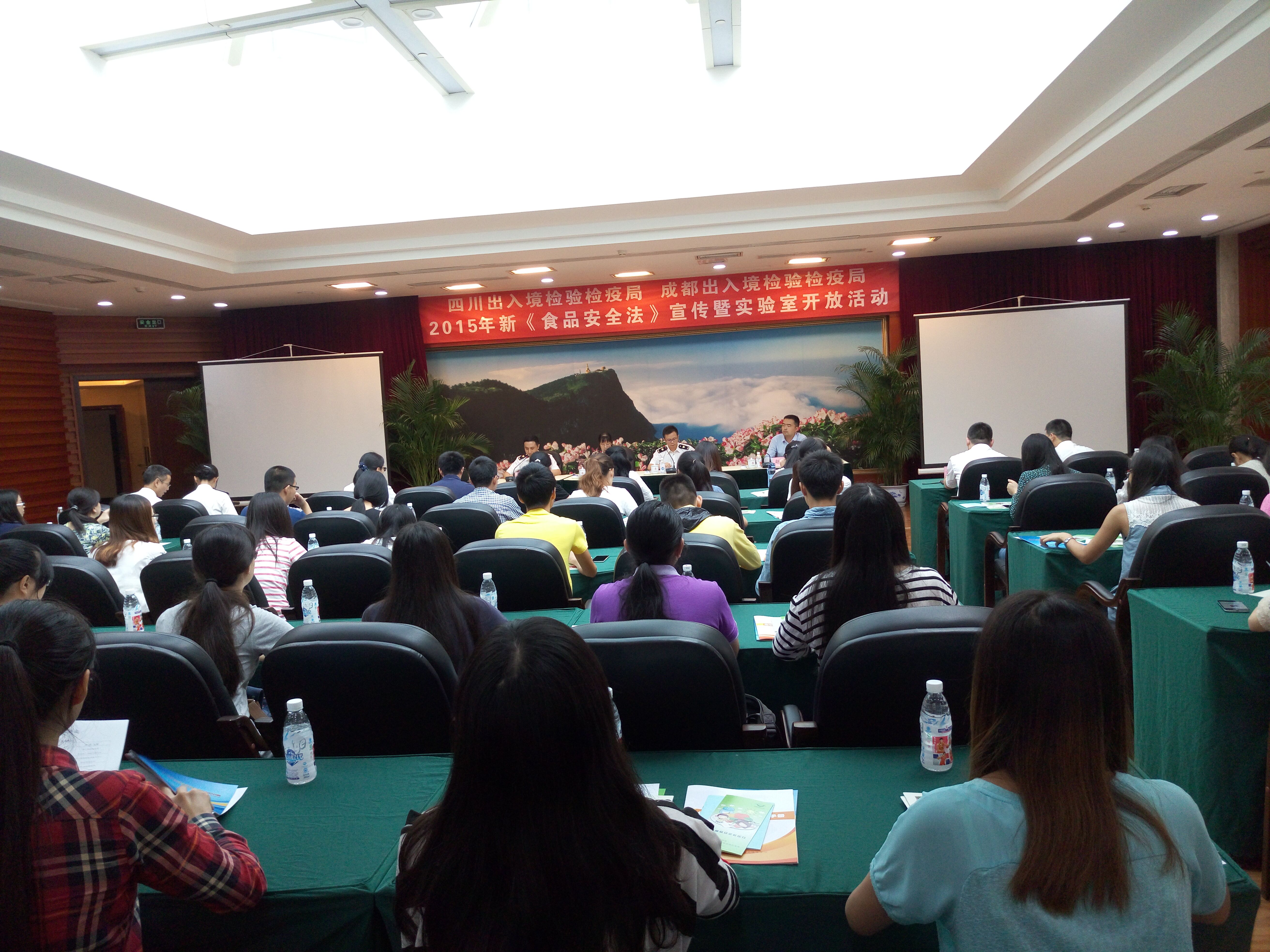 2015年9月11日,我院食品工程系师生受邀参加四川检验检疫局2015年新《食品安全法》宣传暨实验室开放活动,本次活动取得了圆满成功。本次活动由成都检验检疫局周洪波副局长主持,活动刚开始由四川检验检疫局食安处周岷江副处长致辞,并由四川检验检疫局技术中心陈世界副主任对技术中心的实验室概况进行了介绍。接下来四川检验检疫局食安处袁莎科长从修订背景和思路、框架、与进出口食品相关修订内容三个方面为大家介绍了2015年新《食品安全法》,并通过与2009版的《食品安全法》进行比较,突出表现了新版《食品安全法》在食品生产、销售、监管等各个环节的管理更为全面、完善,新版《食品安全法》将成为食品安全的有力保障。随后,成都检验检疫局食品与卫生监督处的刘良老师重点为大家介绍了进口食品检验监督管理的相关内容。了解了进口食品检验监督管理的内容,成都检验检疫局食品与卫生监督处朱黎萍老师用真实案例为大家讲解了进口食品的检验,并比较了实体店购买与海淘之间的区别,提醒大家海淘食品存在一定的风险。此外,还为大家介绍了一些进口食品真伪鉴别的小方法。讲座部分结束后,进入互动环节,同学们积极参与其中,提出问题,并得到了解答。互动环节后,同学们被分为两组,分别由杨苗老师和刘苏锐老师带队依次参观了肉类检测重点实验室、理化实验室、食品安全重点实验室、微生物实验室、野生动物检疫及监测重点实验室、鞋类及原材料重点实验室、丝类检测重点实验室。走进四川检验检疫局学习参观,不仅丰富了同学们的专业知识,开阔了眼界,也为同学们提供了与专业质检人员沟通交流的机会。本次活动的成功举办受到了师生的一致好评。