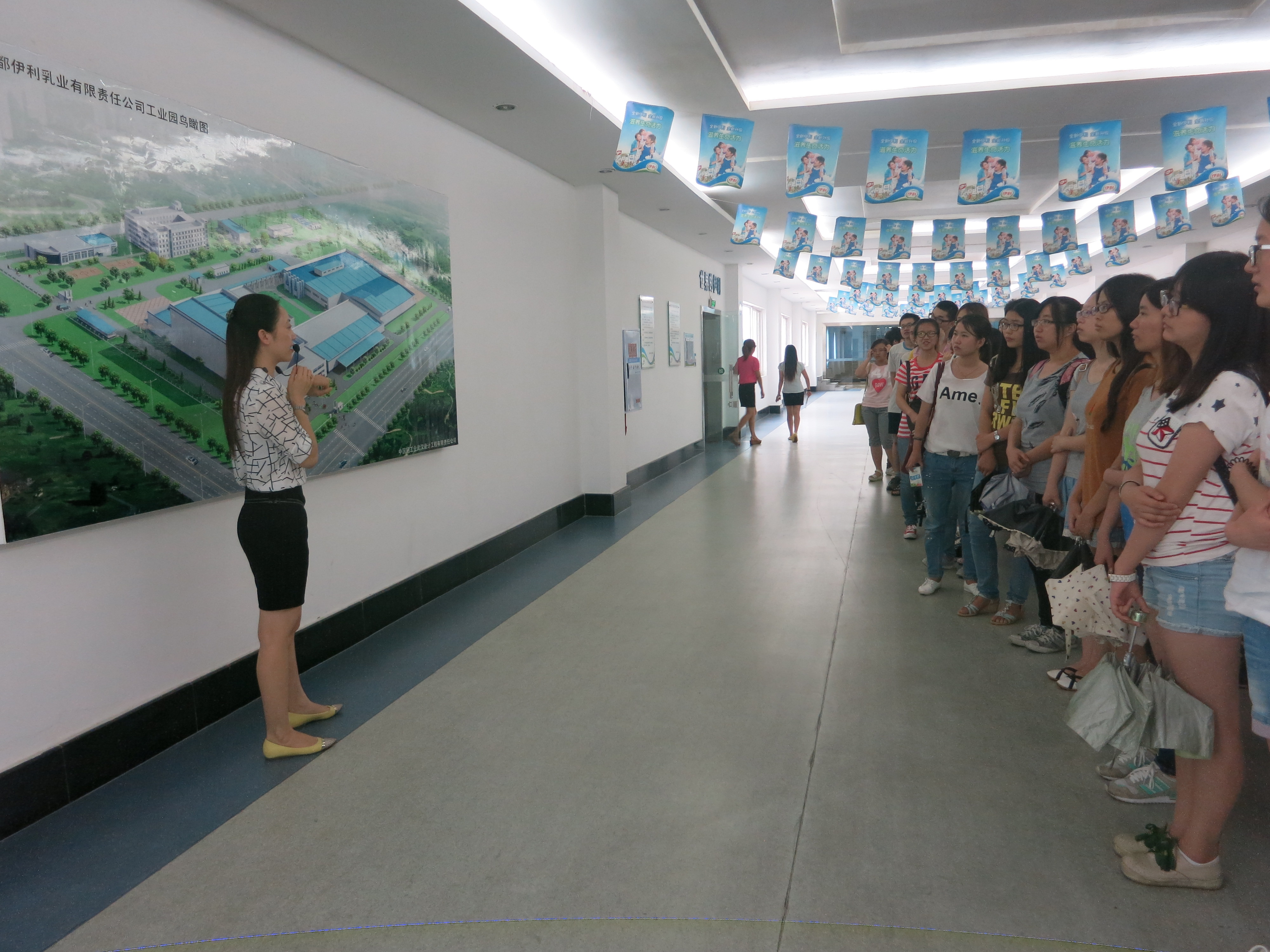 轻纺与食品学院2012级食品科学与工程专业师生一行90余人,经过一个半小时的车程来到了成都伊利乳业有限责任公司,在陈经理的接待下参观了该公司工业园内的生产环境和加工过程。成都伊利乳业有限责任公司是内蒙古伊利实业集团股份有限公司的全资控股子公司,始建于1983年,原名是呼和浩特回民奶食品总厂,于1993年更名为伊利乳业有限责任公司,而成都伊利乳业有限责任公司投建与2006年,2008年正式投入使用,位于邛崃市工业集中发展区,地处国内经济社会发展最具活力和带动力的西南区域,辐射以成都为中心半径范围内的重庆、陕西、贵州、云南大量发达的省市,主要从事液态奶、酸奶、奶粉和冰淇淋等产品的开发、生产和销售,是伊利集团在西南地区建设的第一个生产基地,也是目前西南区最大的乳制品生产加工基地。在陈经理的带领下,我们进入了参观通道,陈经理向师生们简单介绍了公司的近况,并告知了我们接下来的参观流程:水处理车间→液态奶→液态奶包装车间→冰淇淋制作加工车间。首先,伊利“老铁匠的生命链条”寓言所展示的严格质量要求与信念,深深地让我们食品人所折服,目前市场能够排除利益把质量安全放在第一位的又有几人,其次,咱们伊利还提倡“老鹰新生”的创新改良观,伊利不仅有天时地利,伊利三大黄金奶源:呼伦贝尔、锡林郭勒、新疆天山,还拥有符合国家民族发展观的91自拍和独到的生产加工工艺。市面上的伊利产品很多,做一个横向对比,则不得不感叹伊利的市场份额所占比例是多么的大,例如伊利巧乐兹,比起市场同类产品,其所占市场份额遥遥领先,年销售额高达18个亿。紧接着,陈经理带领我们师生参观了乳业生产的各车间,包括酸奶前处理车间、中控间、液奶灌装间、液态奶包装间、液态奶瓶装间等。在乳业园后场,我们看到了成都伊利的污水处理中心、收奶区、采样区和冷饮物流,以及位于绿化带后的员工生活区。陈经理细致耐心地为我们讲解关于成都伊利乳业园内的一切运转,使我们全体师生获益匪浅。参观完后,伊利邀请我们全体师生品尝了伊利的产品——冰工厂冰淇淋,带给了我们炎炎夏日的丝丝甜蜜和凉爽,在此表示衷心的感谢。最后,我们和陈经理一起在成都伊利大楼前拍了合影,结束了本次实习参观的行程。