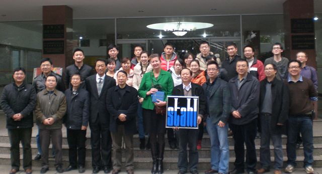 —斯塔尔奖学金颁奖典礼、技术讲座暨时尚产品展系列活动在皮革楼报告厅顺利举行。参加本次颁奖典礼的嘉宾有斯塔尔(中国)公司执行董事Anna Teeuwen女士、人事部经理施勇先生、技术经理李林先生、包袋鞋面革涂饰经理蔡淳煜先生、高级技术代表夏敏先生以及轻纺与食品学院党委赵毅书记,院长何有节教授、党委副书记刘晓虎副教授,生物质与皮革工程系副主任彭必雨教授、对外协作办主任周华龙教授、制革清洁技术国家工程实验室副主任张宗才教授、陈武勇教授、外事秘书陈意博士等。到场的还有全体获奖学生、2010级轻化工程专业本科生和其他年级学生代表。