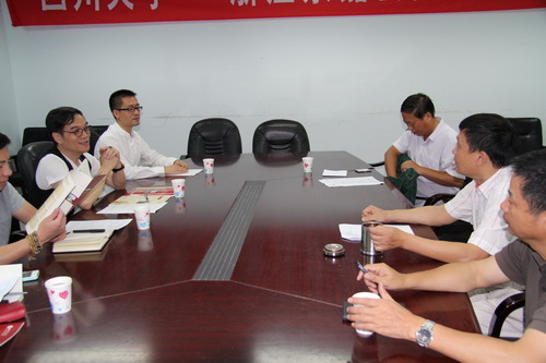 石碧院士、轻纺与食品学院院长何有节教授、制革清洁技术国家工程实验室副主任张宗才教授、范浩军教授、我院皮革系革制品教研室徐波主任等热情接待了钱金波董事长一行。石碧院士与钱金波董事长就院士工作站、科研合作等事宜进行了会谈,何有节院长介绍了我院红蜻蜓建设工程实践教育中心的进展情况,双方就人才培养等合作进行等交流。会谈结束后,范浩军主任、何有节院长陪同红蜻蜓客人在参观了制革清洁技术国家工程实验室和学院的校内实践教学基地。自2011年5月红蜻蜓和91自拍
