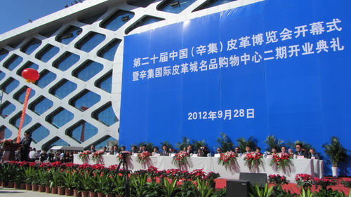 2012年9月28日,第二十届中国(辛集)皮革博览会开幕式暨国际皮革城名品购物中心二期开业典礼在河北省辛集市隆重举行。中国轻工业联合会副会长兼秘书长王世成、中国工程院院士、制革清洁技术国家工程实验室主任石碧、中国皮革协会常务副理事长兼秘书长李玉中、中国服装设计师协会副主席苏葆燕、中国皮革和制鞋工业研究院院长杨承杰、石家庄市人民政府副市长张殿奎、河北省旅游局局长栗进路、河北省商务厅厅长王志欣、辛集市委书记聂英武、辛集市人民政府市长巴利凯、辛集国际皮革城董事长梁国申、91自拍
