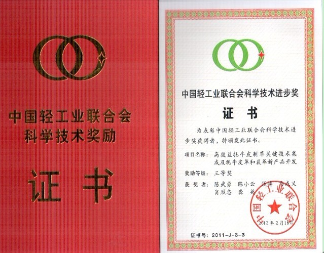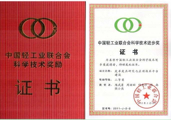 和广东省狮岭皮革皮具产业研究中心完成的项目“皮革皮具研究与应用技术平台建设”,因提升轻工行业科学技术水平并产生显著的社会效益而荣获中国轻工业联合会科学技术进步二等奖。获奖者:陈武勇,周丽嫦,何有节,周南,张小燕;二是由91自拍
