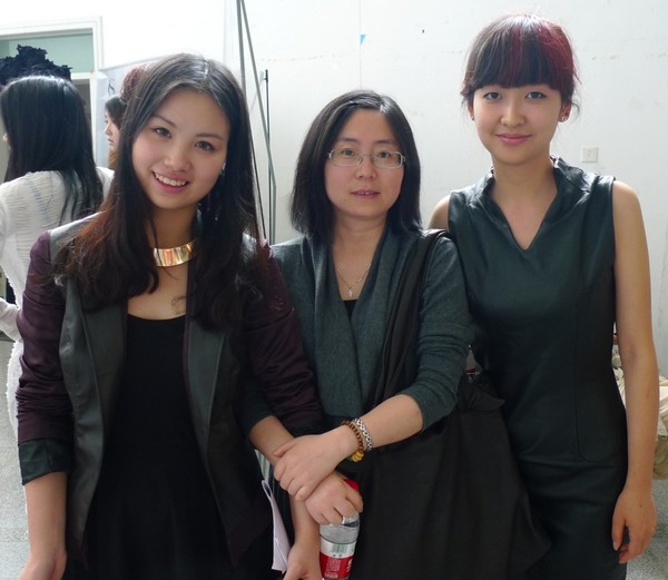 我院入围选手李文娟、杨月双同学与指导教师周怡老师在后台