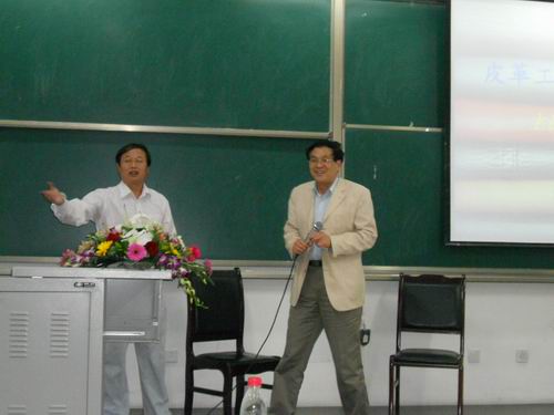 轻纺与食品学院邀请,国家制革技术研究推广中心主任王全杰教授访问我院并作了“皮革工业是日不落产业”的主题讲座,陪同王教授一行的还有烟台大学皮革与蛋白质实验室老师段宝荣博士、硕士研究生牟宗波。本次讲座于2011年5月26日晚在江安校区综C405教室举行,轻纺与食品学院院长何有节教授作为嘉宾参加了本次活动,到场的还有轻化工程专业低年级同学。