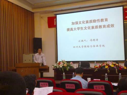 2011年大学文化素质教育论坛在望江校区干部培训基地隆重举行,我院学生工作组冯国涛老师作为入选论文作者代表在论坛上发言。