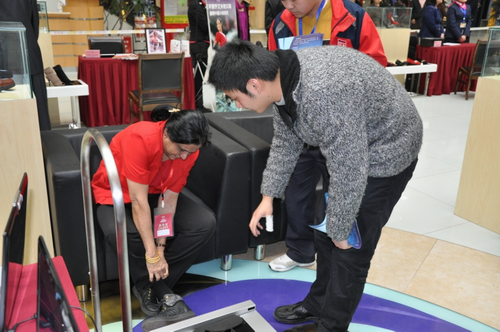 2010年3月28日,我校生物质与皮革工程系同学在成都武侯鞋都参加了成都市人民政府外事办与武侯新区管委会联合举办“春意情浓—外籍友人鞋都选鞋行”活动的定做鞋设计工作。 脚型的测试使用我校自主研发的高科技足底光学扫描系统,世界先进的足部三维扫描系统和足底压力采集系统,应用专业的鞋类三维设计软件,同时结合成都本土中国女鞋之都的技术和生产优势,为外籍人士量身定制专用鞋。 来自法国、美国、泰国、新加坡、巴基斯坦、斯里兰卡等驻蓉领馆的领事官员以及配偶参加了此次活动。在此期间,我校同学将各国人士的脚型数据,如脚长、宽、围度等,一一录入电脑,使用专业程序分析后得出相应的脚型数据模型,并将数据模型导入到三维鞋类设计软件中进行虚拟的设计,最后根据设计的结果来定制鞋。