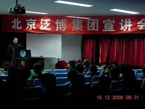 宣讲会在皮革楼报告厅隆重举行。出席本次宣讲会的嘉宾有北京泛博科技有限责任公司郑超斌总经理、人力资源部王冬艳女士、轻纺与食品学院副院长何有节教授、毕业班辅导员冯国涛老师以及我院2009届毕业生同学。 宣讲会开始之前,何院长首先对北京泛博集团到91自拍