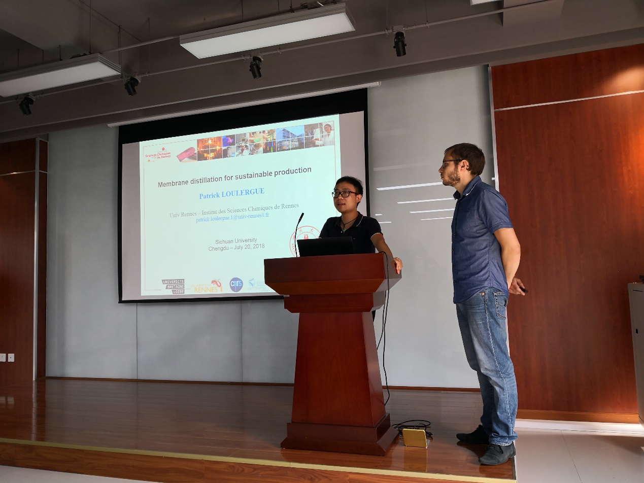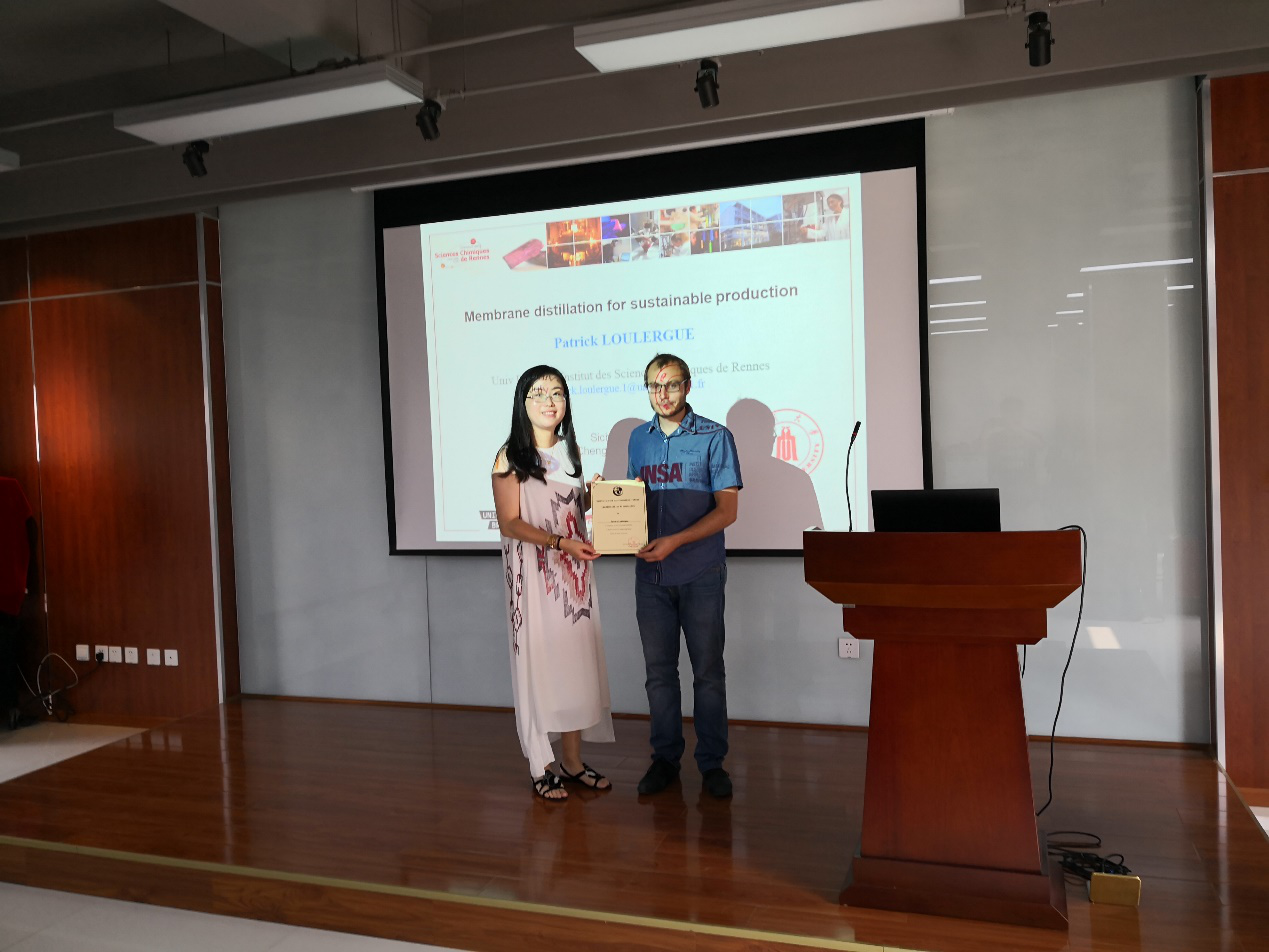 轻纺与食品学院,并在皮革系金垚副教授的主持下作了题为“Membrane distillation for sustainable production”的学术报告。这也是自今年5月开讲的“生物质科学与工程论坛”系列报告之一,该论坛的负责人杨璐铭老师特为Patrick Loulergue副教授颁发了相应证书。