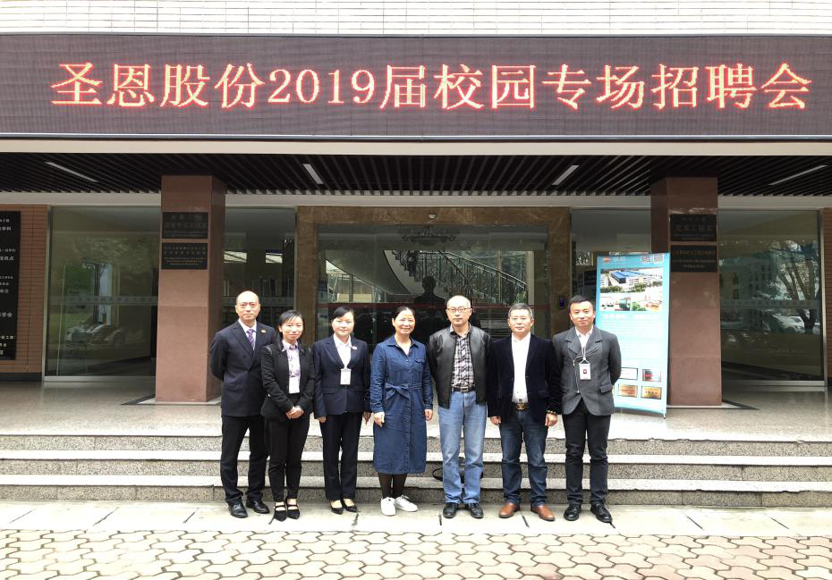 2018�10�17日下午,“圣情邀你,赋能未来”圣恩股�2019届校园专场宣讲会在四川大学望江校区西区皮革楼二楼报告厅举行。四川大学轻纺与食品学院副院长何强教授、食品工程系系主任吕远平教授、教师李欣蔚出席了宣讲会,成都圣恩生物科技股份有限公司生产中心总监吴世明先生、市场部总监邓立威先生、研发部主管曾建英女士、人力资源部经理邓璞先生、人力资源部副经理何樱女士参加了本次宣讲会�
