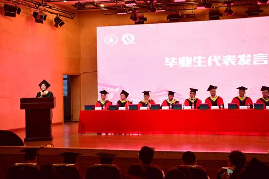 何有节院长代表学院党政,向圆满完成学业并获得�位的174名本科生�88名硕士研究生�18名博士研究生表示热烈祝贺,向为同学成长付出心血的所有教职员工、学生家长表示感谀何院长回顾�2019届毕业生从进校到现在与学院的共同成长和健康快速的发展。为同学们指出新时代为同学们创造了广阔的发展空间,中华民族的伟大复兴为同学们指明了奋斗的方向,相信大家能谱写辉煌的人生篇章。同时何院长也提出了三点希望,希望同学们志存高远、回馈社会;脚踏实地、立足平凡、认真工作;也希望同学们常回家看看。最后,何院长祝愿全体毕业生在人生新的征途中,找准定位,抓住机遇,在新的岗位上创造出无愧于伟大时代的辉煌业绩�