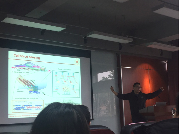 在学院的大力支持下,经过我院青年专家郭俊凌特聘教授的组织筹备,学院“新视野下生物质与界面科学”科学论坛,于2019年12月13日下午在皮革楼215报告厅如期举行。本次论坛旨在拓展构建交叉学科的学习交流平台,了解学习受邀专家在高分子化学、界面科学、细胞力学等领域的前沿研究,拓宽师生的学术视野,推动学院开展高水平的跨学科、跨领域的交流与合作。本次论坛的报告人有:91自拍