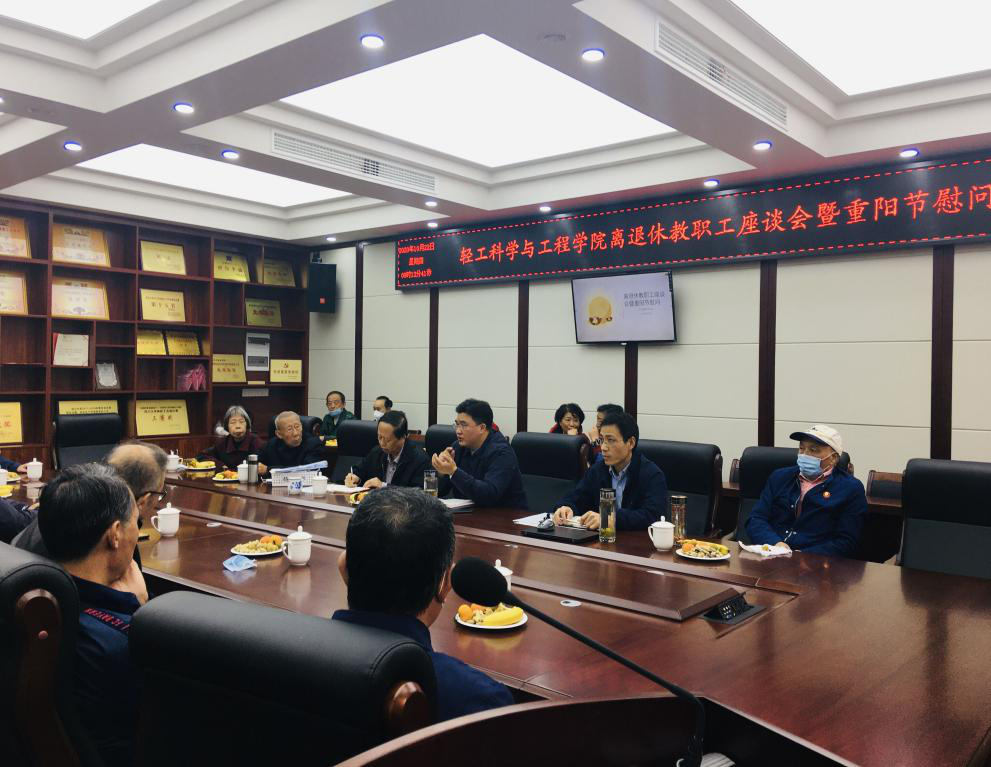 2020年10月22日,我院在纺工附楼205会议室召开离退休教职工座谈暨重阳节慰问会。学院党委刘晓虎书记、何有节院长、冯国涛副书记、党政办李慧主任、教工党支部代表、离退休教职工等参加本次会议。会议由刘晓虎书记主持。