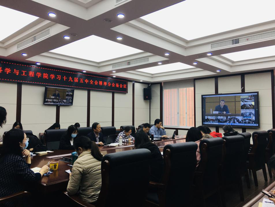 2020年11月17日,学校组织召开学习党的十九届五中全会精神宣讲会,按照学校工作要求,我院认真组织学院中层领导班子、两委委员、支部书记及全体辅导员,在纺工附楼205会议室参加了分会场学习。本次会议由李言荣校长主持,王建国书记作十九届五中全会精神宣讲。