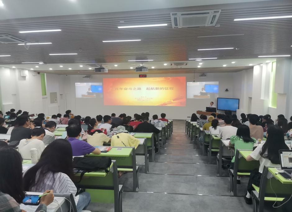 为进一步引导广大师生深刻感悟党的初心使命,用党的奋斗历程和伟大成就鼓舞斗志、明确方向,把学习成效切实转化为奋斗的动力。2021年6月11日晚,何有节院长在望江校区基教C204教室以“百年奋斗之路 起航新的征程”为主题讲授专题党课。2018级辅导员杨维老师与2018级全体本科生参加本次课程学习。
