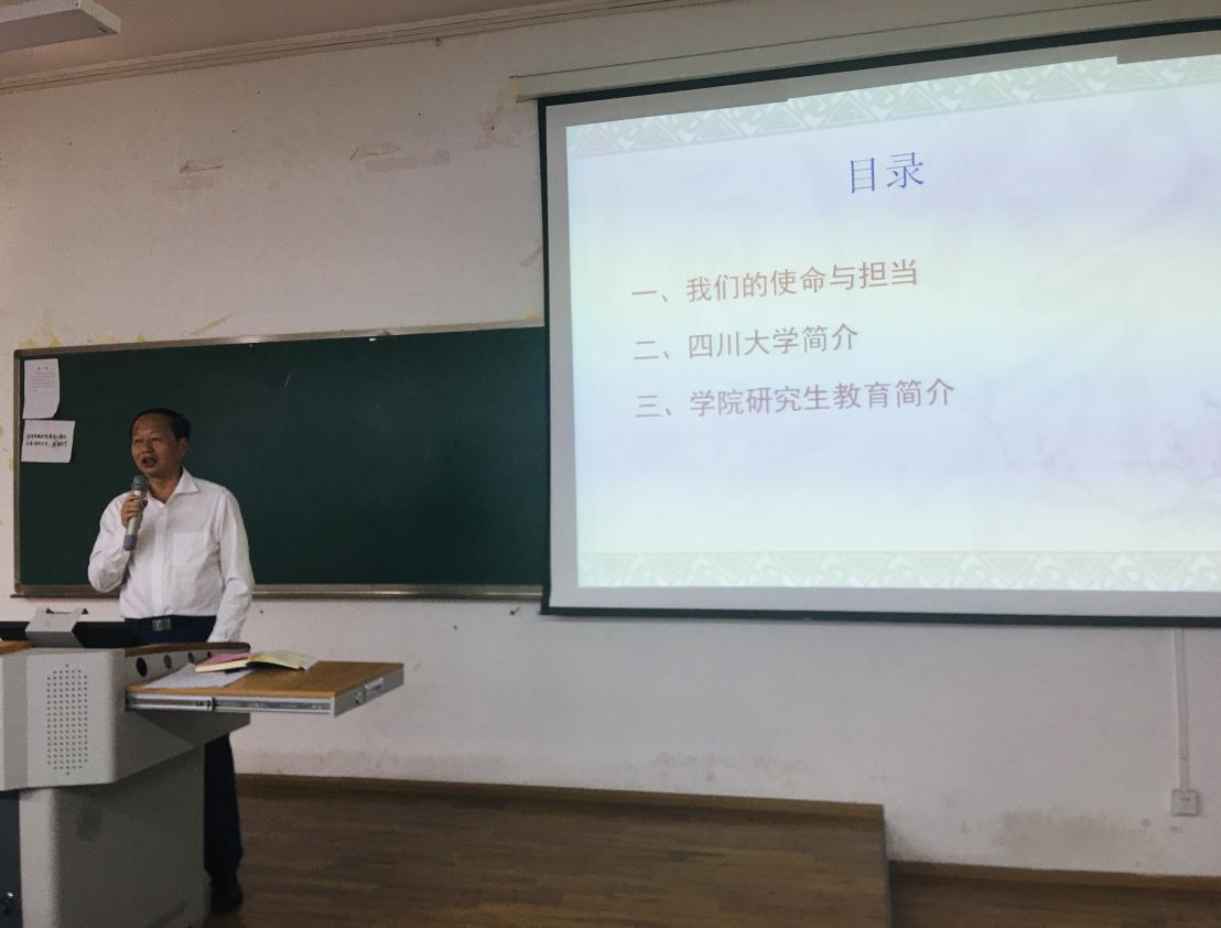 院长何有节教授从使命与担当、四川大学近年取得丰硕成就、学院研究生培养、学科建设与科学研究等方面向2021级同学做了详细全面介绍,勉励同学们踏踏实实做人、认认真真做学问,德智体美劳全面发展�