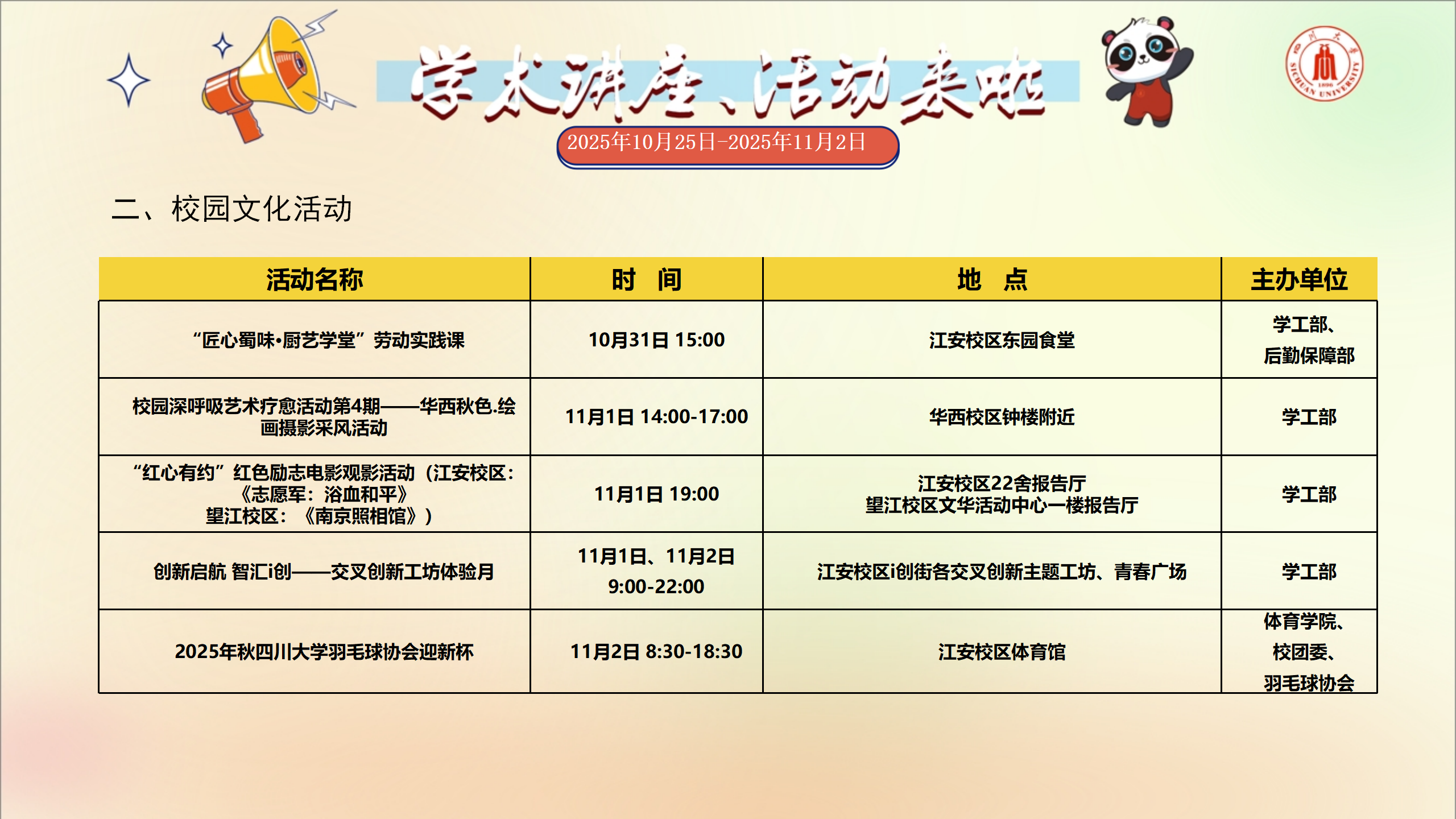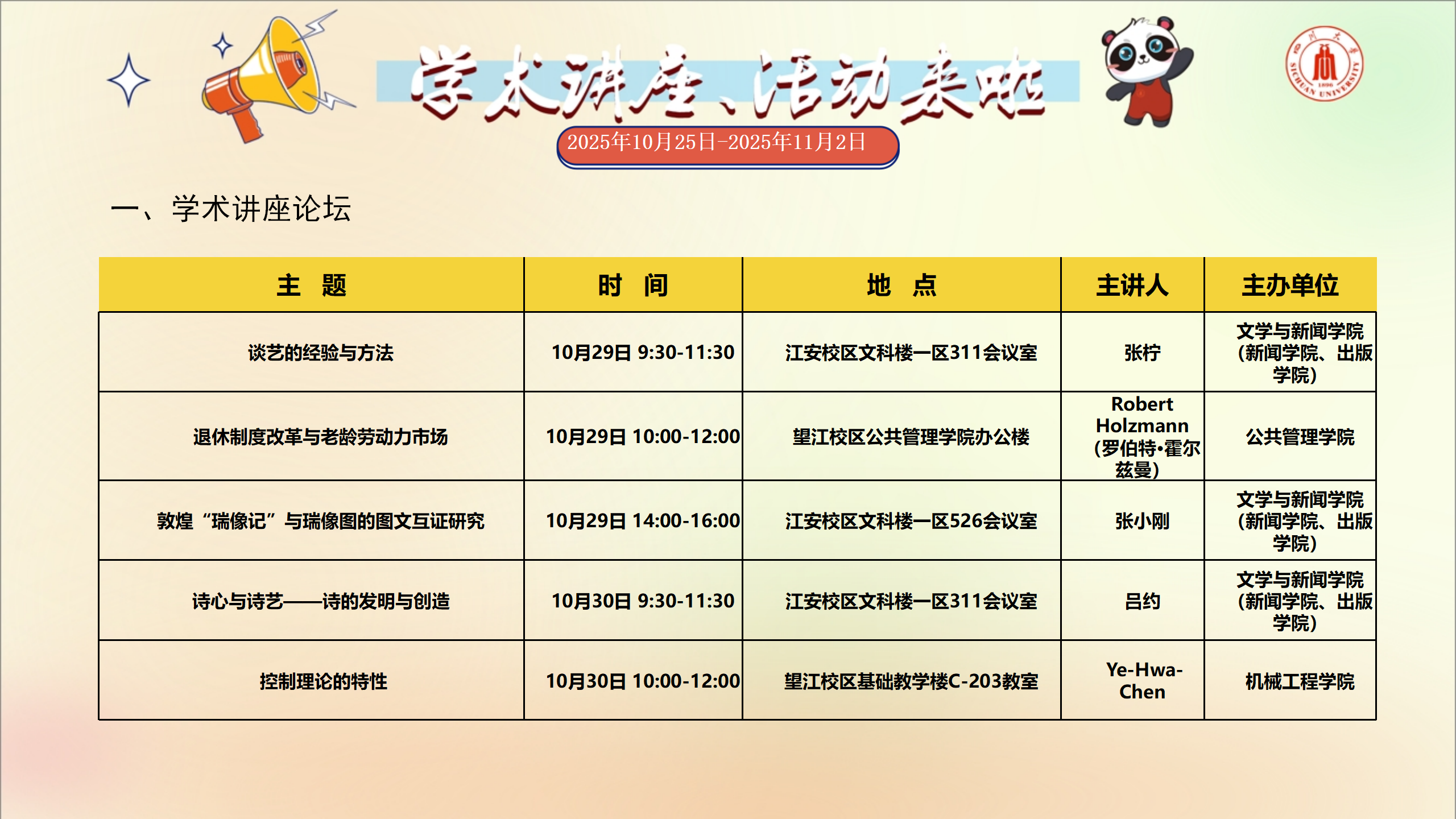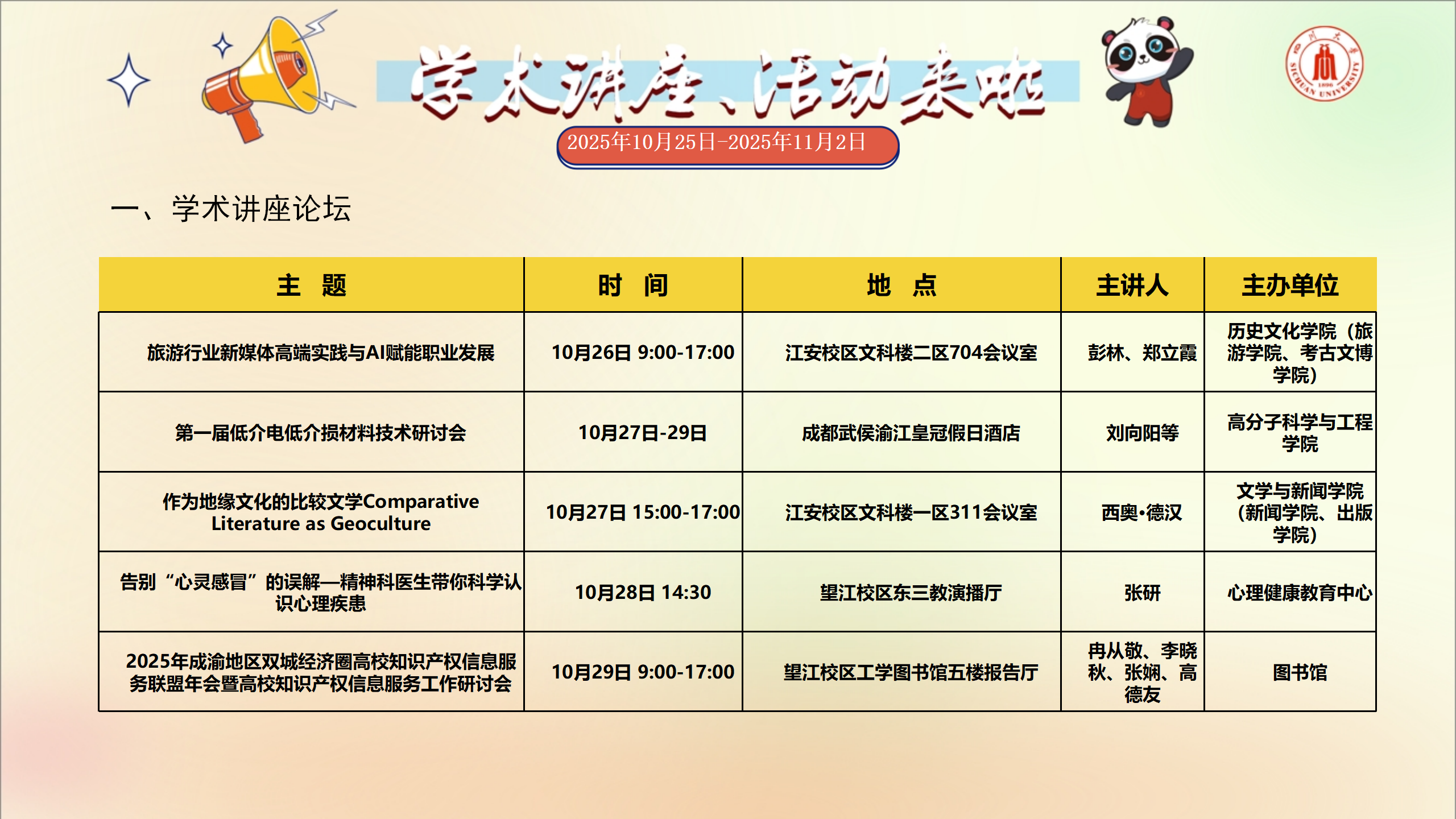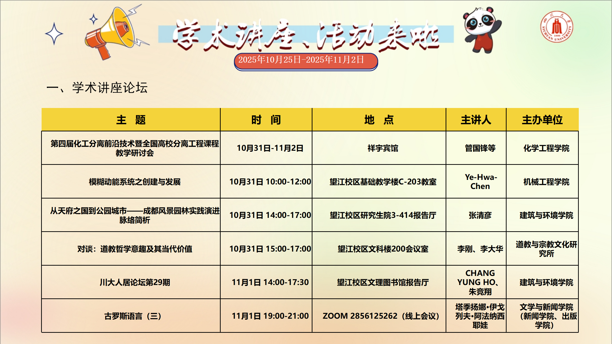 讲座和校园文化活动预告(2025年10月25日-2025年11月2日)